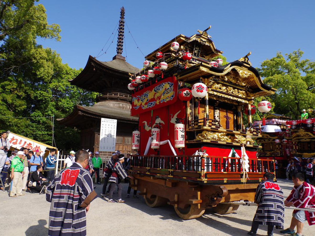 令和8年は本祭(ほんまつり)であり、5つの町から高さ7m、重さ5トンの5台の山車が繰り出されます。神舞と呼ばれる囃子にあわせ、家々の軒を圧するように順行するさまは壮麗そのもの。
