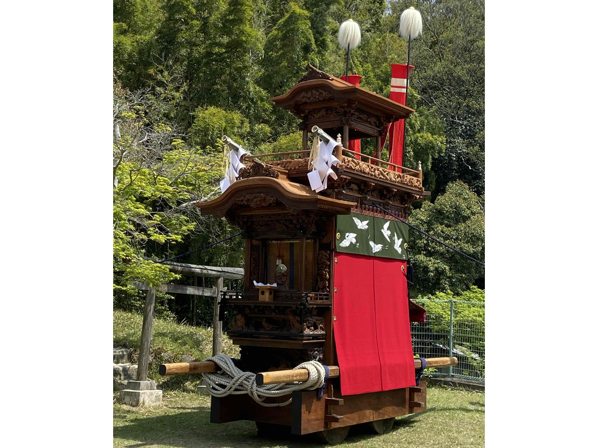 阿久比の春まつりでは、五穀豊穣を願い、精緻な彫刻や、きらびやかな刺繍が施された色とりどりの幕で飾られた豪華絢爛な山車「大山車」が、4月の間、町内の各地区で引き回され、お囃子奉納などが行われます。